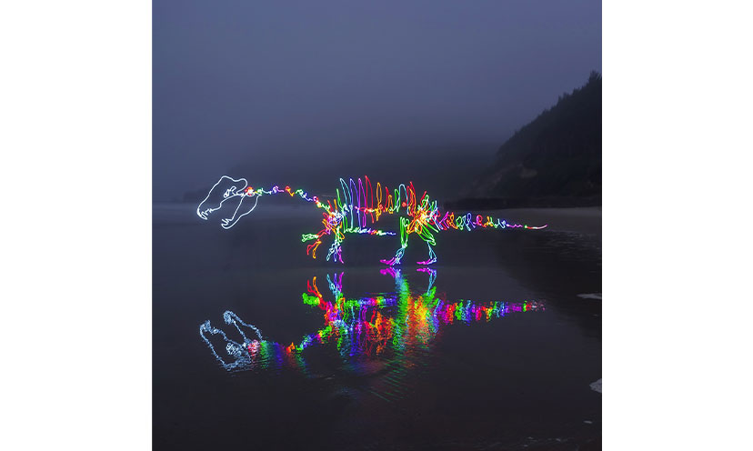 Light painting artist who creates magical night photography with glowing figures and designs set against starlit skies.
