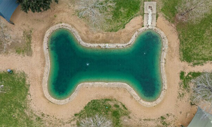 17 off-leash acres with bone-shaped swimming ponds, agility courses, and walking trails.